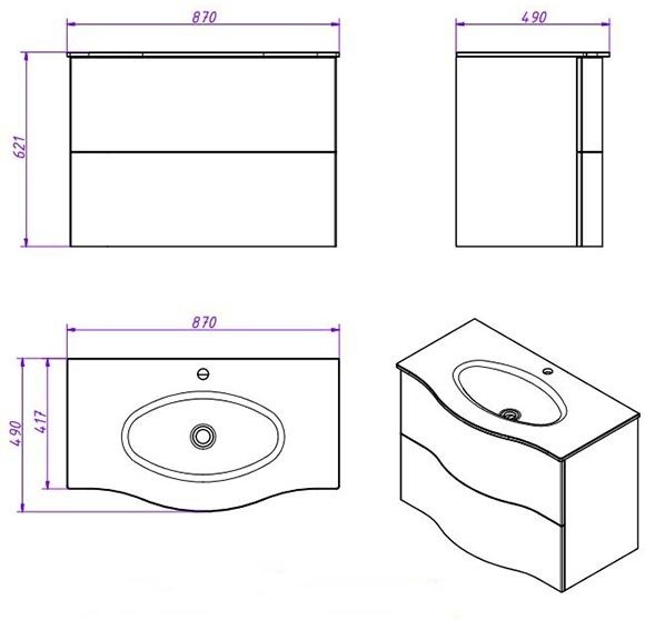 Тумба под раковину Cezares Petalo 87 см PETALO-900-2C-SO-RC-P