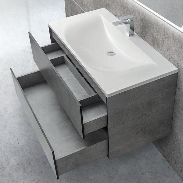 Тумба под раковину подвесная Cezares Premier-Hpl 100 см PREMIER-HPL-100-2C-SO-MGN-BLUM-EST с двумя выкатными ящиками c механизмами PUSH (BLUM) и функцией плавного закрывания, с внешними фасадами, Manga.