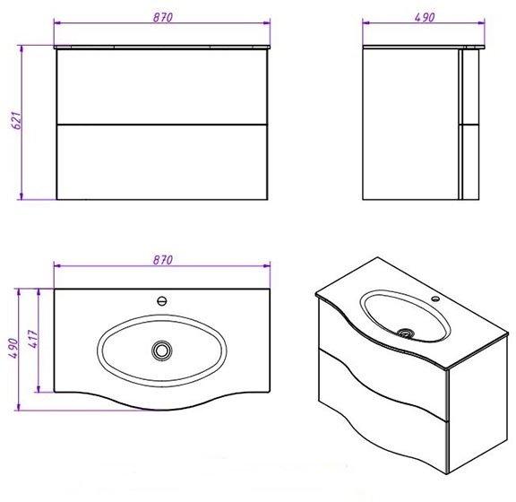 Тумба под раковину Cezares Petalo 87 см PETALO-900-2C-SO-BL-P