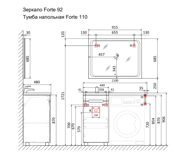 - Высота тумбы с раковиной, см: 90.6