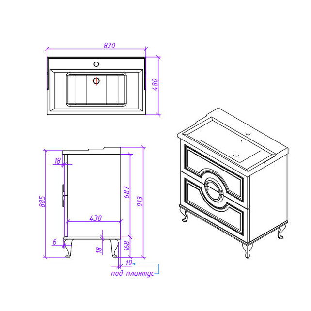 Тумба под раковину Caprigo Valletta 80 см бланж 35317-TP811