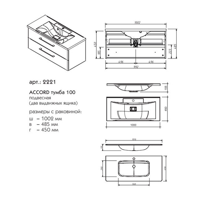 Тумба под раковину Caprigo Accord 100 см бланж 2221-TP811