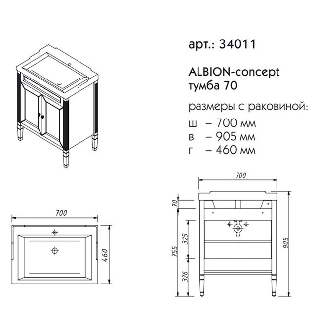 Тумба под раковину Caprigo Albion concept 70 см бланж 34011-TP811