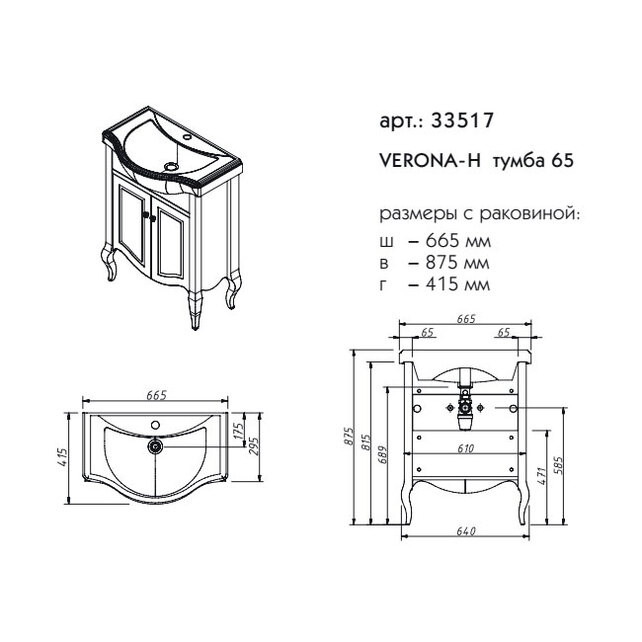 Тумба под раковину Caprigo Verona 65 см антарктида 33517-TP817