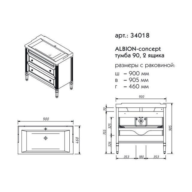Тумба под раковину Caprigo Albion concept 90 см бланж 34018-TP811