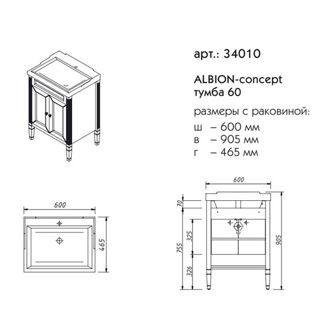 Тумба под раковину Caprigo Albion concept 60 см бланж 34010-TP811
