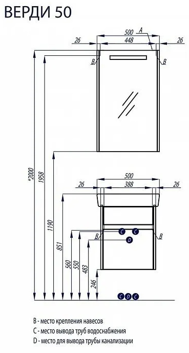 Зеркальный шкаф Aquaton Верди 50 1A195802VDAV0 с подсветкой
