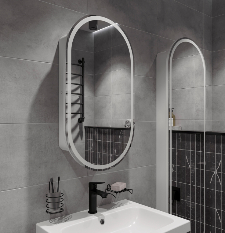 Оснащение зеркала: регулируемая подсветка / подвесы