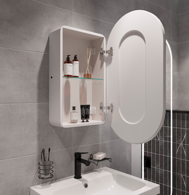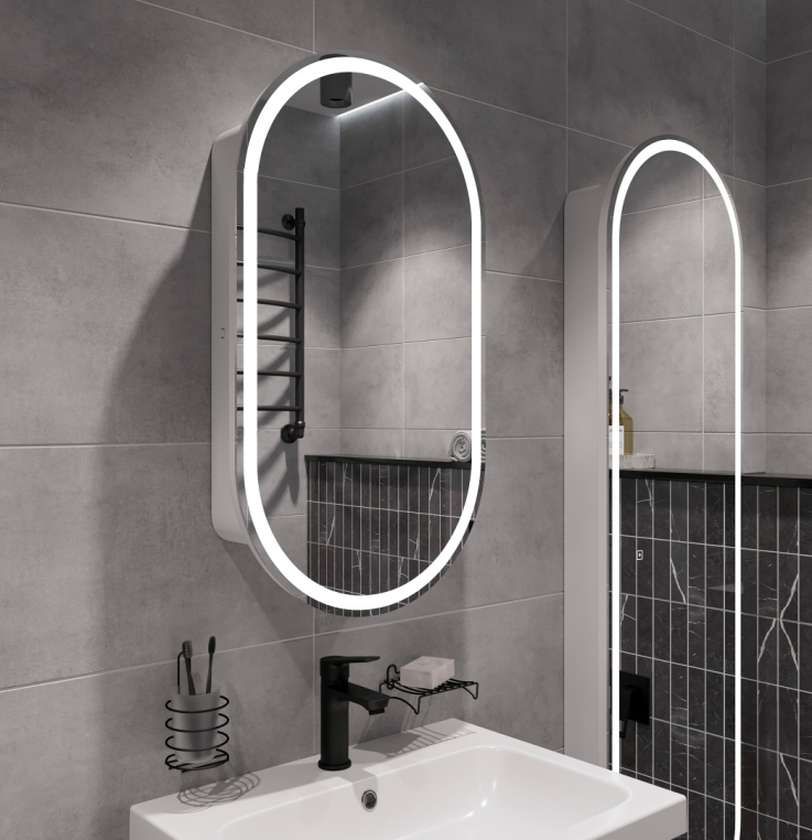 Зеркало-шкаф Stworki Мальмё МВК074 45, с подсветкой, белый, прямоугольный, навесной, овальный, в стиле лофт (МВК074)