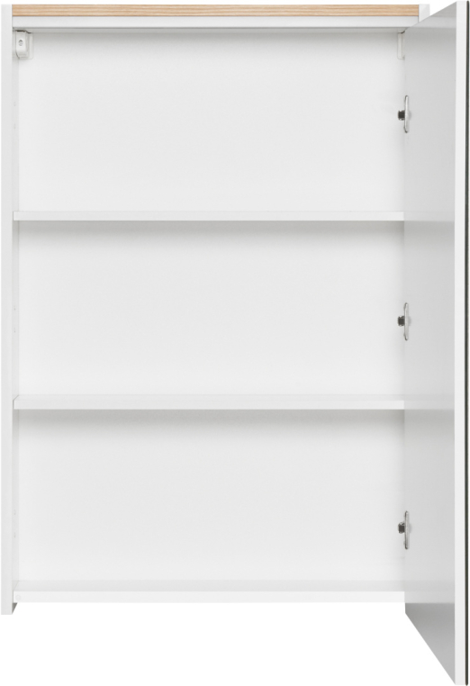 Оригинальный внешний вид зеркальному шкафу Stworki «Дублин 60»придает небольшая контрастная полоска в оттенке светлого дерева надзеркальным полотном. Увеличенная функциональность оборудованияобеспечивается доводчиками, встроенными в петли, и регулируемымиполками с фиксаторами. Аккуратный фацет по периметру зеркалапридает изделию завершенный вид. Корпус из влагостойкой ДСПобработан финишным покрытием по технологии УФ-отверждения.Благодаря такому способу изготовления краска не отслаивается и нежелтеет под действием влаги и перепадов температур.