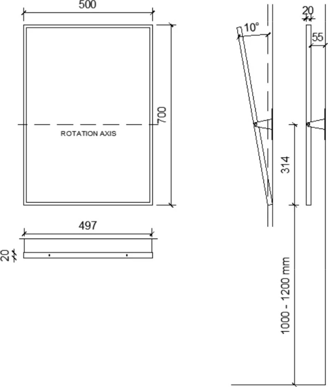 Антивандальное зеркало с рамкой из нержавеющей стали, имеет возможность регулировки угла наклона в пределах 10⁰. Подходит для людей с ограниченными возможностями.