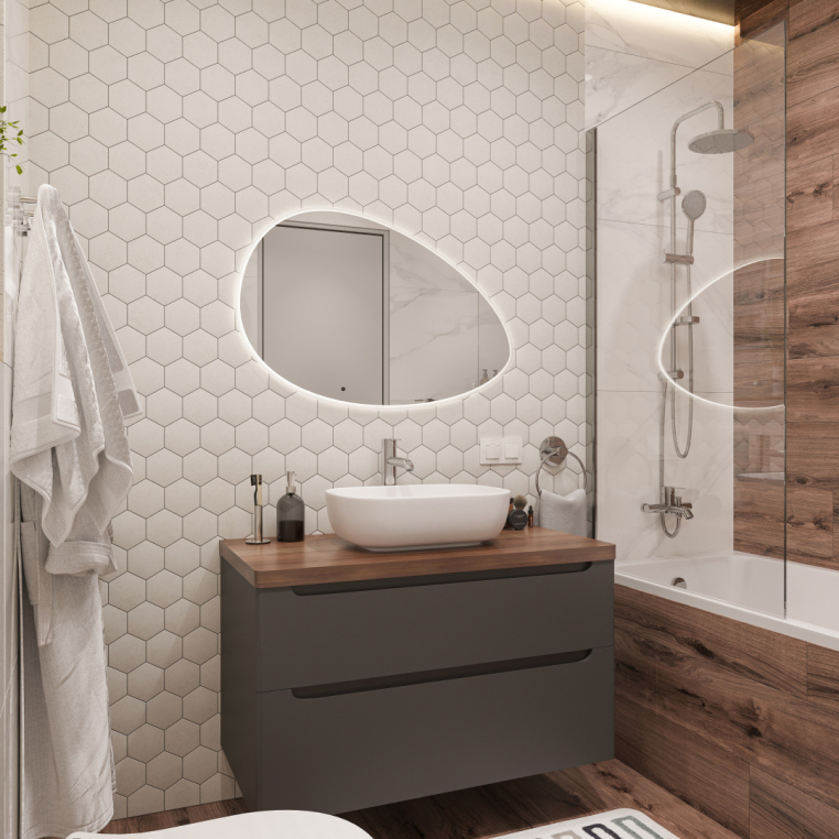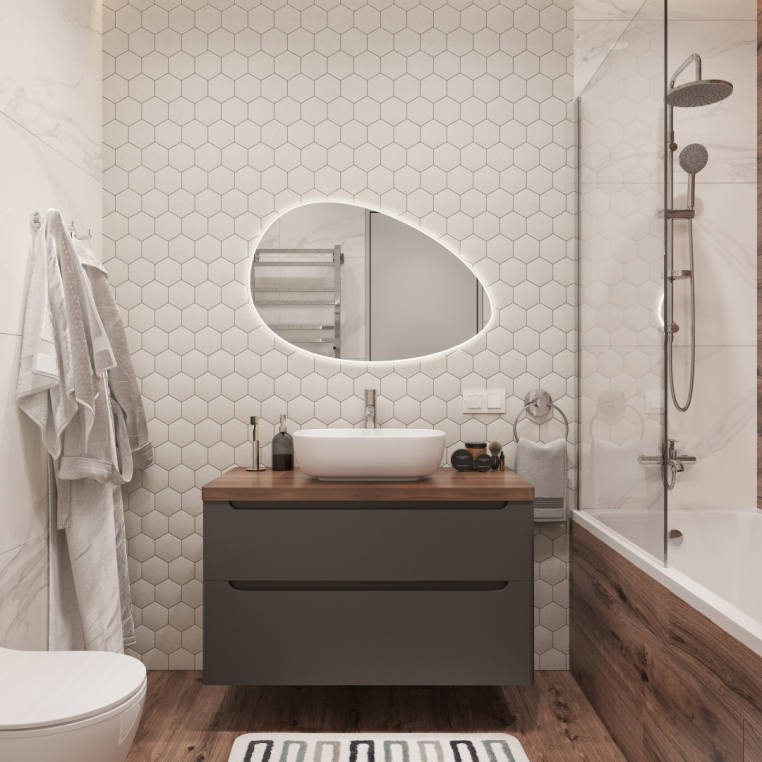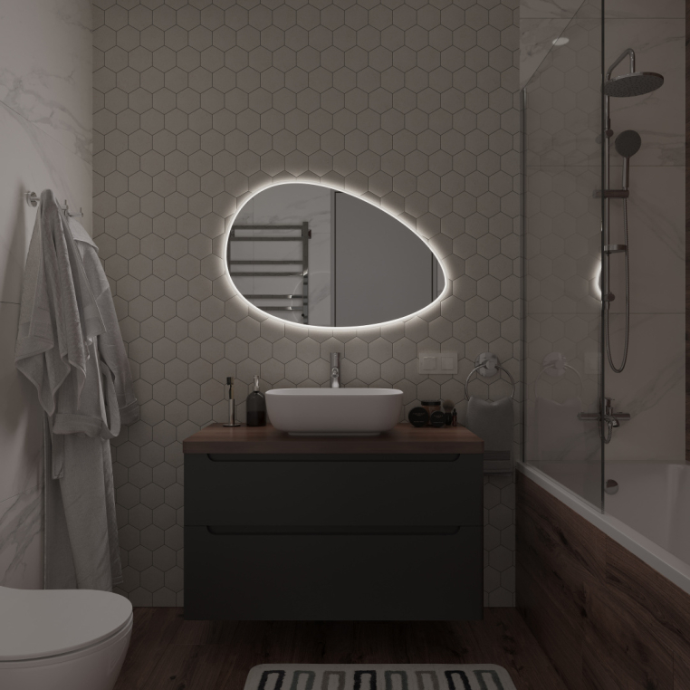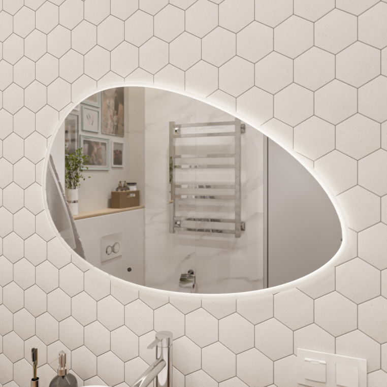 Белое зеркало STWORKI «Скаген 92» — искусное сочетание функциональности и безупречной элегантности. Дизайнеры по-своему интерпретировали овальную форму, сделав ее каплевидной. По периметру размещена LED-лента, создающая сказочное ореольное свечение. Для активации достаточно взмахнуть рукой на расстоянии 3–5 см от инфракрасного датчика. Яркость подсветки, рассчитанной на 50 тысяч часов непрерывной работы, можно регулировать. Электроника защищена от воды пластиковым корпусом. При изготовлении влагостойкого зеркального полотна используется марка стекла М0, с которой можно забыть об оптических искажениях и структурных дефектах. В комплекте подвесы для настенного крепления.