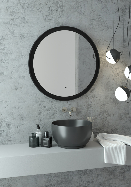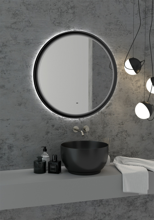 Зеркало круглое Stworki Гриндстед 80 черное, с подсветкой (ЗЛП2166)