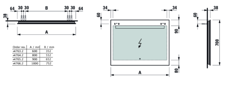 Leelo 100х70см, зеркало, с подсветкой, со светодиодной подсветкой (с памятью), 1 сенсорный датчик, арт. 4.4766.2.950.144.1, Laufen
