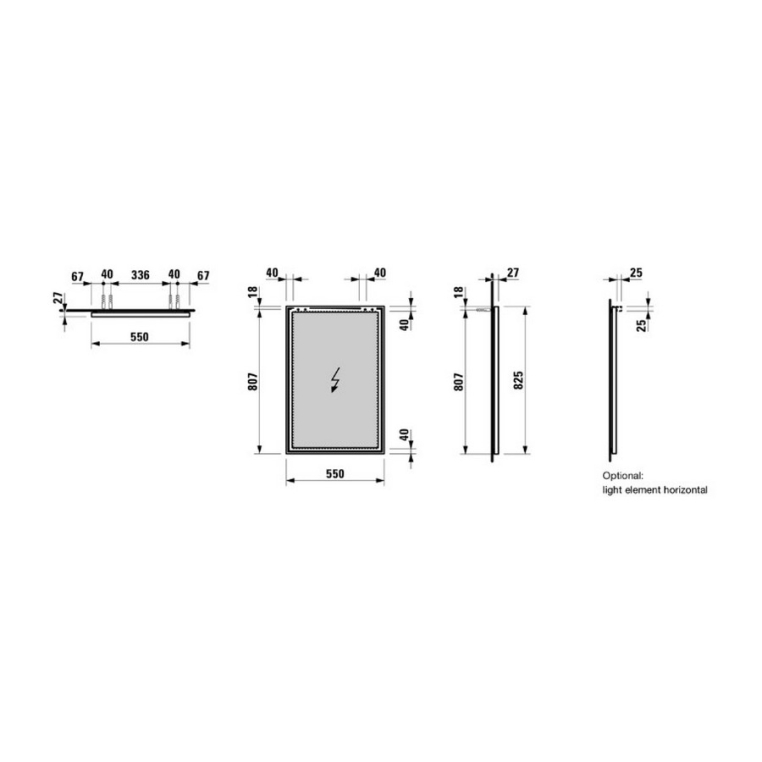 Зеркало Laufen Frame25 4.4740.1.900.144.1 55x82,5 см - с алюминиевой рамкой, - без подсветки (приобретается отдельно)
