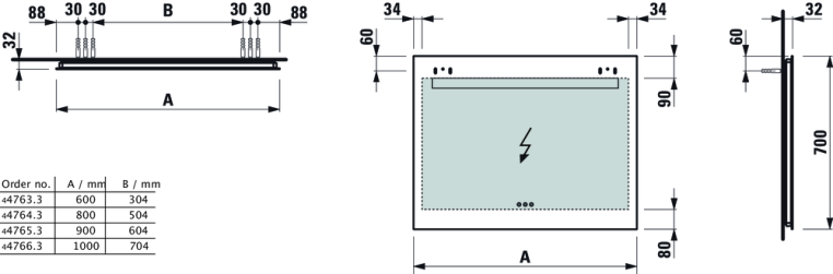 Подвесное зеркало для ванной Laufen серии LEELO 4.4763.3.950.144.1 со встроенным горизонтальным и периферийным светодиодным освещением (с естественной подсветкой по периметру сзади)