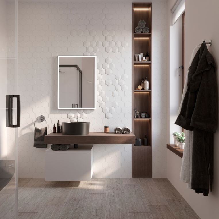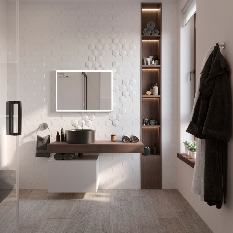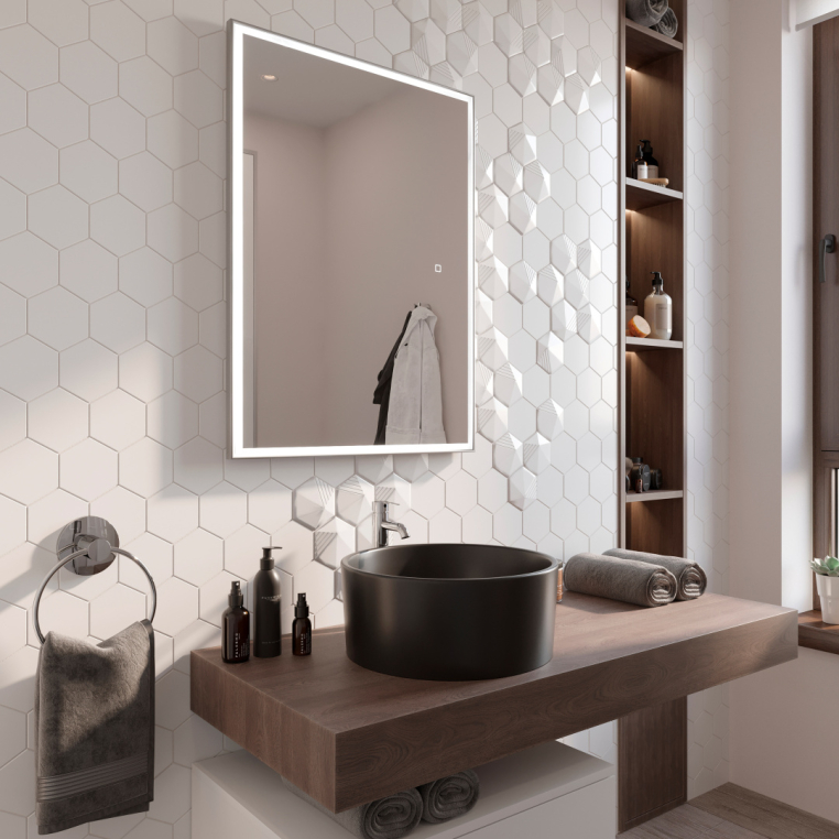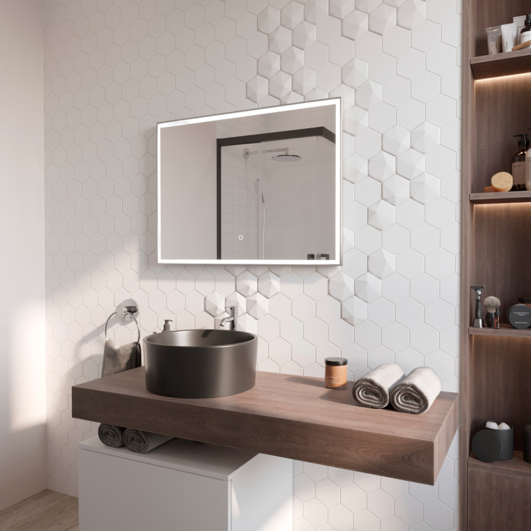 Зеркало STWORKI «Ольборг 80» подкупает премиальным дизайном. Идеальная геометрия подчеркнута серебристой алюминиевой рамой. Модель оснащена подсветкой — светодиодная лента пролегает по всему периметру внутри полотна. Приглушить освещение или сделать его максимально ярким поможет сенсорная кнопка. Ее расположение на лицевой панели зависит от ориентации зеркала — горизонтальной или вертикальной (выбирается при монтаже). Электрические компоненты спрятаны в пластиковом корпусе и не боятся воздействия влаги. Зафиксировать изделие на стене не составит труда с крепкими подвесами из комплекта.