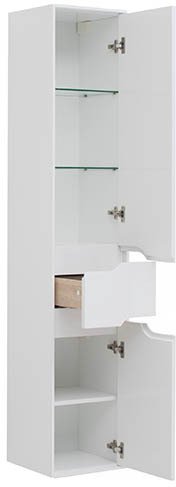 Шкаф-пенал Aquanet Модена 35 см 00196967 белый - предназначен для тех, кто хочет создать особую атмосферу в своей ванной комнате, кого привлекает все оригинальное, но кто при этом отдает должное традициям, практичности и функциональности.