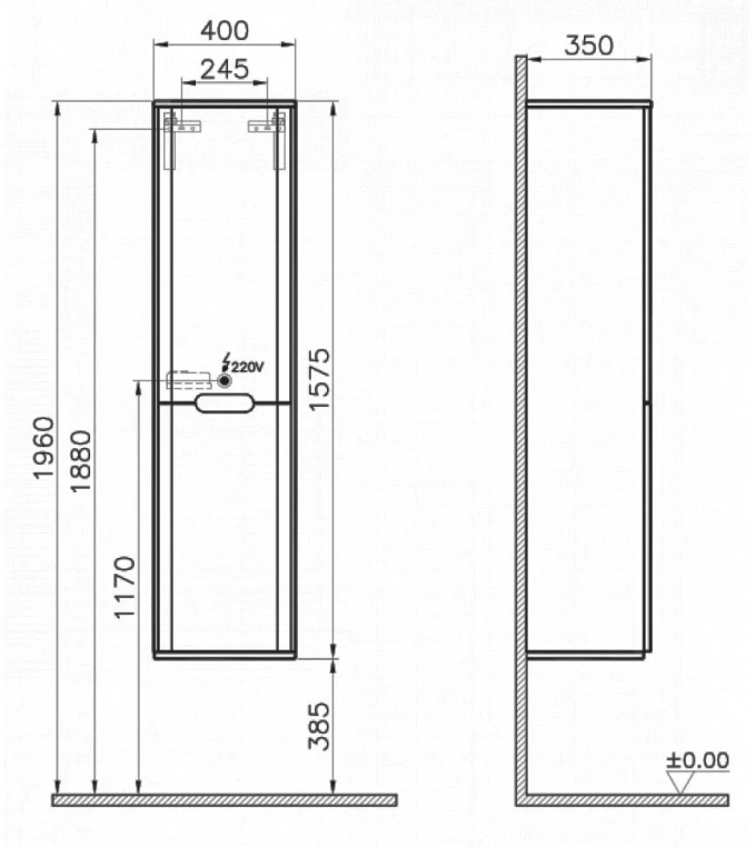 Пенал левосторонний белый матовый с корзиной для белья VitrA Sento 60854