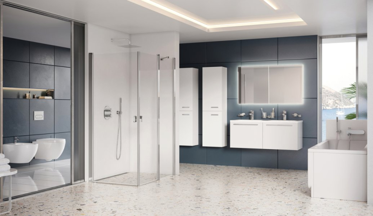 Боковой пенал SB 390 Chrome разделен на верхнюю и нижнюю части в соотношении 2/3 и 1/3. В верхней части есть две стеклянные полки, в нижней - одна. Поставляется в собранном виде.