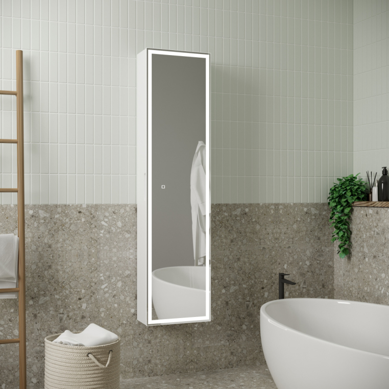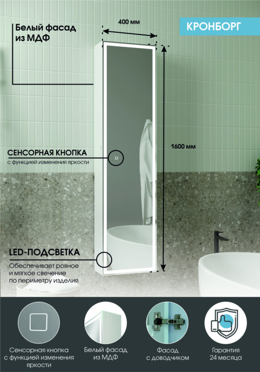 - Оснащение: внешняя подсветка тумбы/шкафа / зеркало