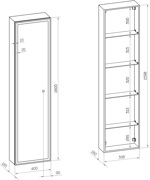 - Габариты (Ш Г В): 40x18,5x160 см