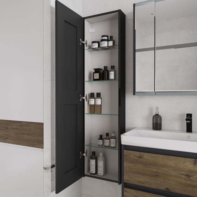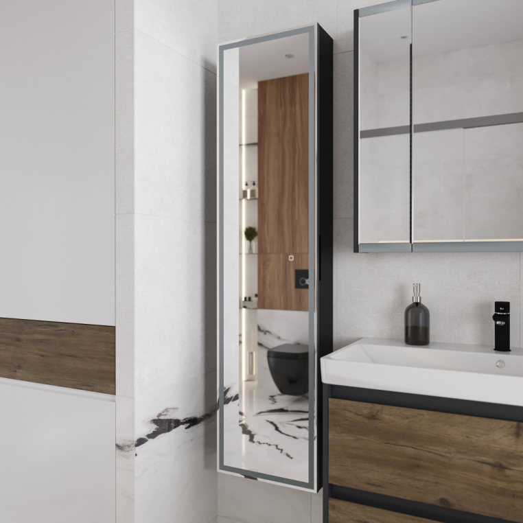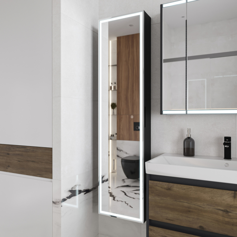 Шкаф-пенал с зеркалом Stworki Кронборг МВК077 40, с подсветкой, черный (МВК077)