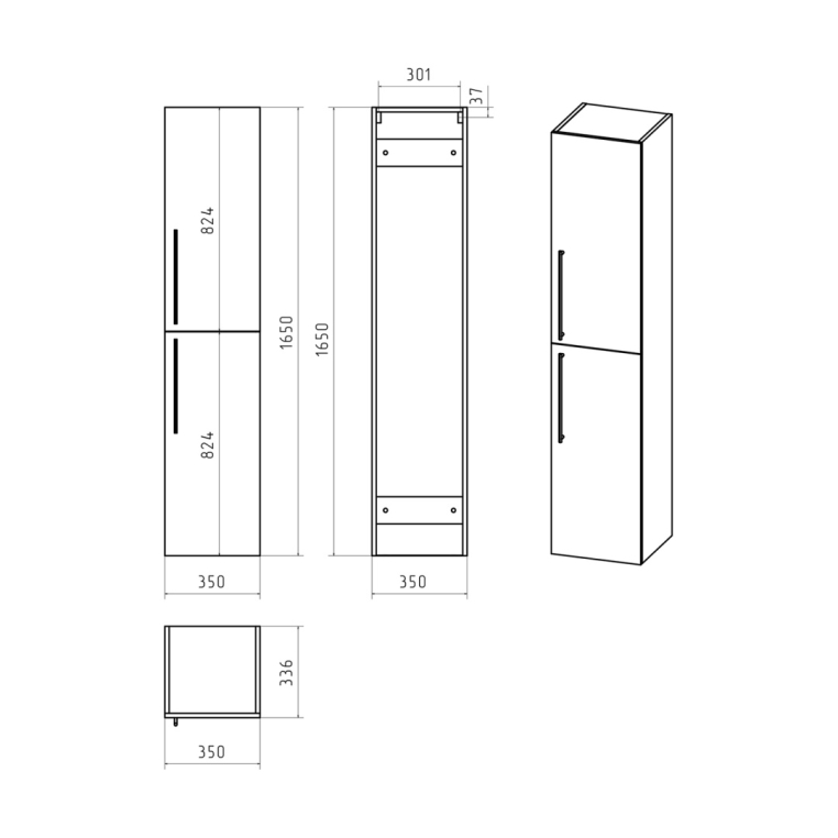 • Размер мебели, мм (ш/г/в) - 350x340x1650