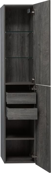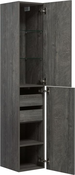 Шкаф-пенал для ванной Aquanet Nova 35 в цвете "дуб рошелье". Он изготовлен из влагостойкой ламинированной древесно-стружечной плиты и предназначен для использования в помещениях с повышенной влажностью. Шкаф-пенал Nova можно установить на стену, тем самым под ним будет свободное пространство, что особенно удобно при уборке помещения. Также можно установить его на ножки. Для этого их необходимо приобрести дополнительно. Причем, есть выбор: купить белые ножки или черные матовые. Зона хранения скрыта за двумя дверками. Петли могут быть установлены как справа, так и слева, что обеспечит открывание дверей в удобную сторону. В пенале есть и открытые полки, и выдвижные ящики. Все необходимое можно распределить по своим местам. Ящики оборудованы надежными направляющими Hettich Quadro Silent System, которые обеспечивают полное выдвижение. Направляющие с доводчиками, так что при открывании и закрывании ящикам обеспечен плавный ход и отсутствие неприятных стуков.