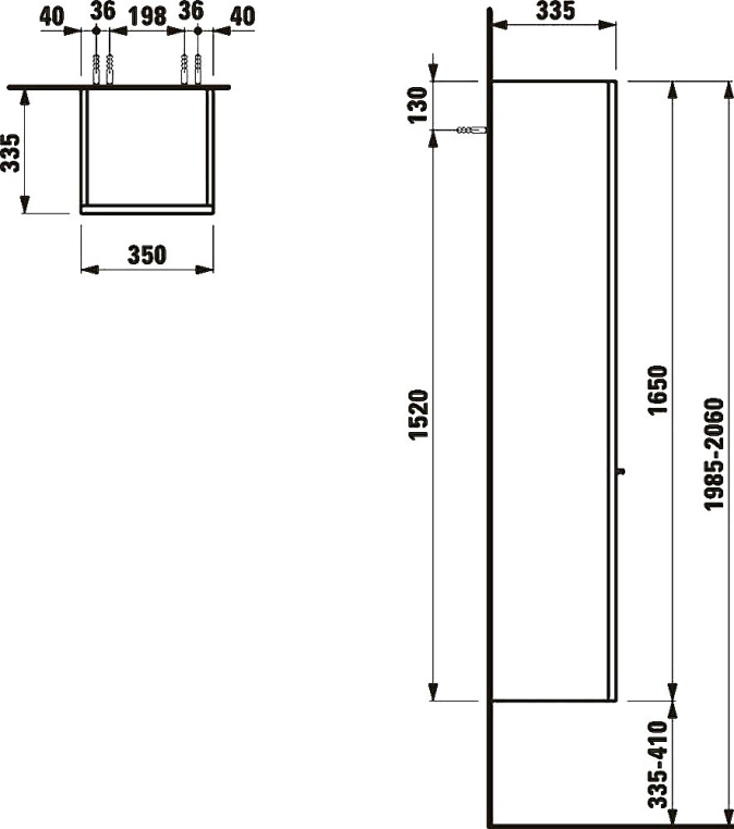 Case 35х33,5х165см, пенал, левый, подвесной монтаж, арт. 4.0202.1.075.463.R, Laufen