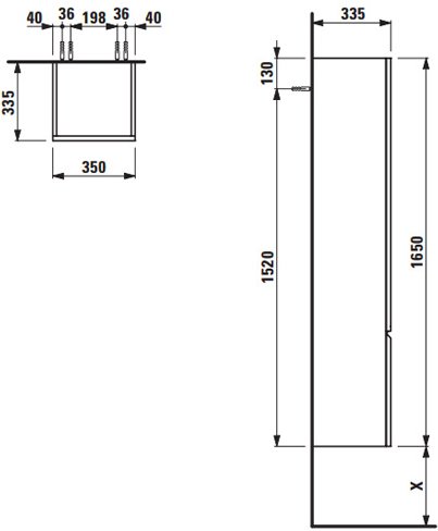 Пенал подвесной Laufen Palace 165x35 (петли справа) 4.0202.2.075.475.1