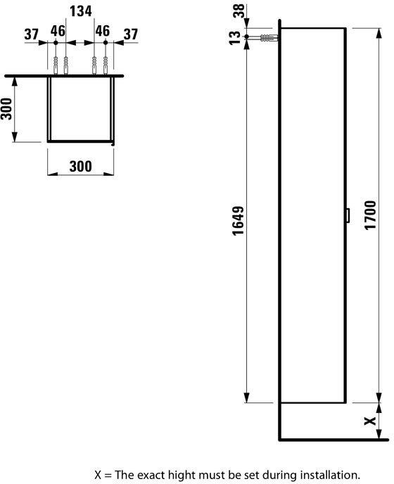 Высокий шкафчик Space, 300х300х1700 мм, с зеркальной дверцей, левое/правое открывание дверцы, цвет светлый орех