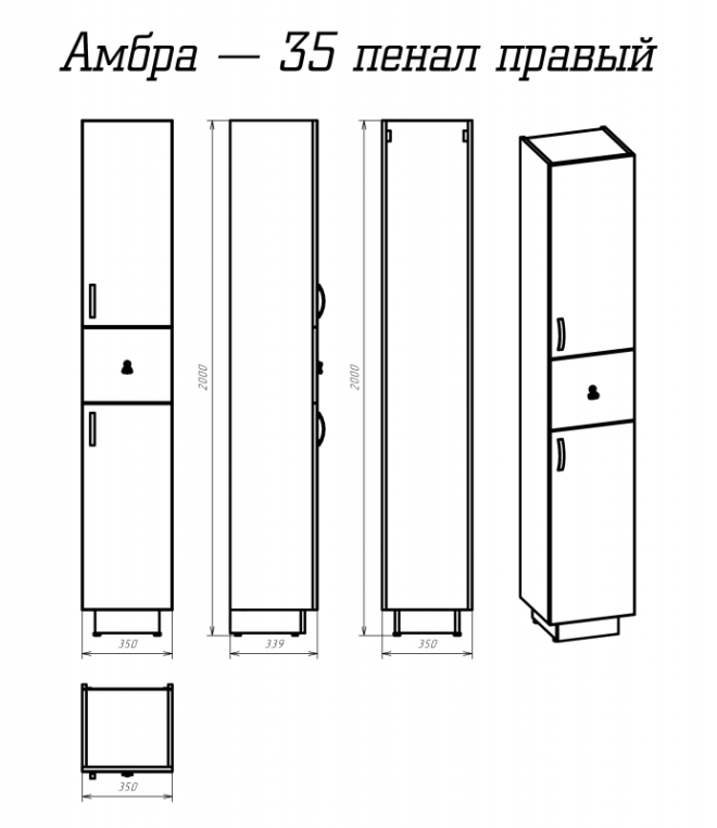 Шкаф - пенал Misty Амбра-35 П-Амб050-011П правый