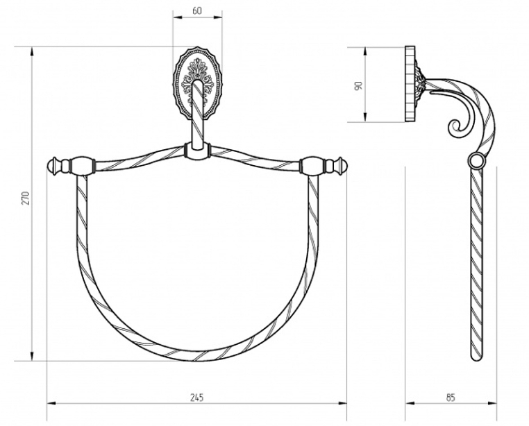 Кольцо коллекции EDERA бренда MIGLIORE предназначено для небольшого полотенца для рук или для гигиены. Его удобно разместить рядом с раковиной или биде. Благодаря витым элементам и необычной овальной розетке аксессуары коллекции EDERA будут смотреться элегантно и оригинально в классическом интерьере ванной комнаты.