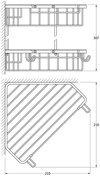 Полка угловая 2-х ярусная FBS Ryna RYN 006 с крючками