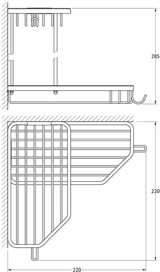 Полка угловая 2-х ярусная FBS Ryna RYN 013 с крючками
