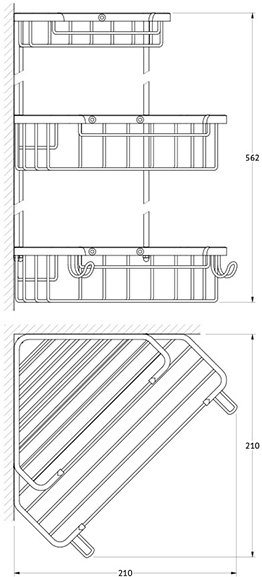 Полка угловая 3-х ярусная FBS Ryna RYN 008 с крючками