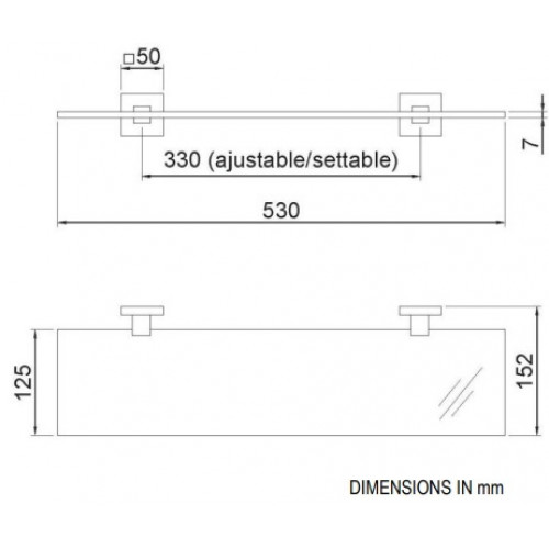 NOFER Barcelona 16910.N Полка стеклянная для ванной комнаты 530 мм (прозрачное стекло | черный). Изготовлена из нержавеющей стали AISI 304 и закаленного стекла. Размеры: 50 x 530 x 152 (мм). Крепежный материал в комплекте. Скрытые крепления.