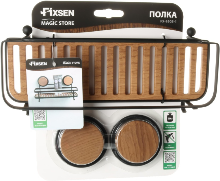 Полка Fixsen прямая одноэтажная черная-дерево Magic FX-950B-1