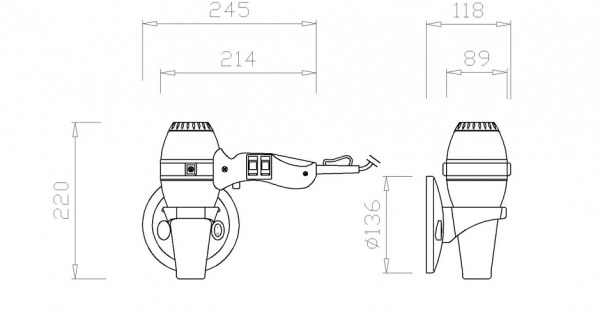 Фен Nofer HOTELline 02057.B с антивандальной защитой, черный/металлик