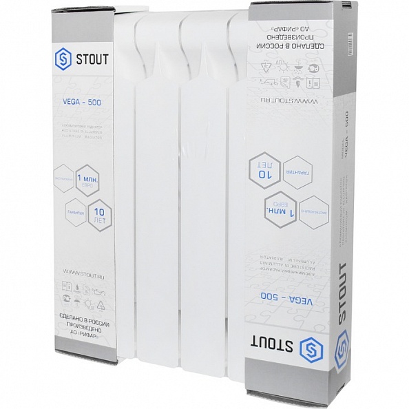 Радиатор алюминиевый STOUT Vega (SRA-1310-050006) 500 6 секций боковое подключение белый RAL 9016