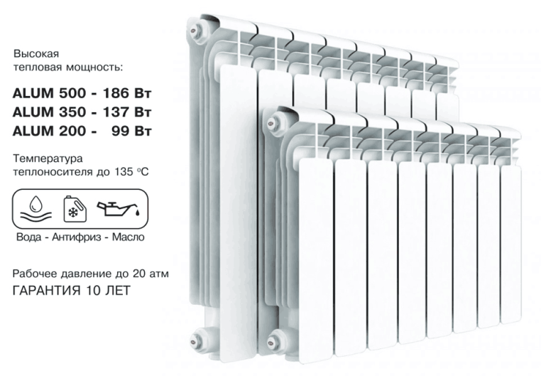 Радиатор алюминиевый Rifar Alum 200/90/8 секций предназначен для применения в системах отопления жилых и административных зданий с центральной и индивидуальной отопительной системой. Обладая высокими теплотехническими характеристиками, радиаторы Rifar имеют дополнительные конструктивные преимущества. Геометрия вертикального канала обеспечивает высокое рабочее давление до 20 атмосфер и низкое гидравлическое сопротивление движению теплоносителя, а также уменьшение образования отложений на внутренних стенках каналов и коллекторов. В качестве теплоносителя в этих радиаторах могут быть использованы незамерзающие жидкости (антифризы) для систем отопления в соответствии с инструкцией их производителя по применению и обращению.