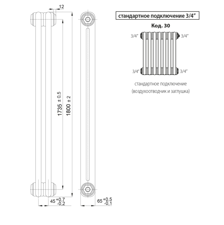 • 4 переходника 1 1/4” до 1/2” (или 3/4”) монтируется на радиатор