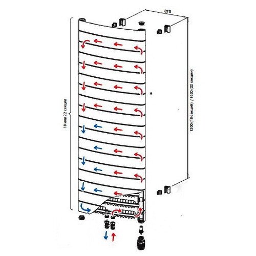 RIFAR CONVEX полностью адаптирован к вертикальному положению. Секции установлены горизонтально, но оребрение на них - вертикальное, благодаря этому осуществляется естественная конвекция и увеличивается теплоотдача. Система креплений выполнена с учетом вертикальной конструкции, вес радиатора отопления после установки равномерно распределяется по кронштейнам.
