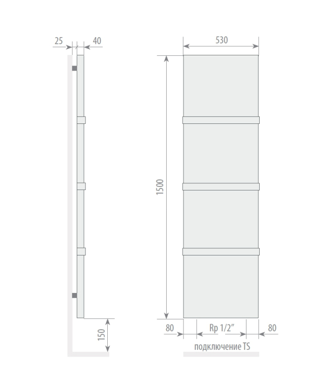 *Комплект настенных крепежей, установленных на корпусе радиатора - 4 шт.