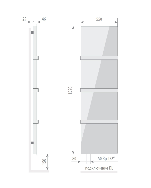 *Комплект настенных крепежей, установленных на корпусе радиатора - 4 шт.