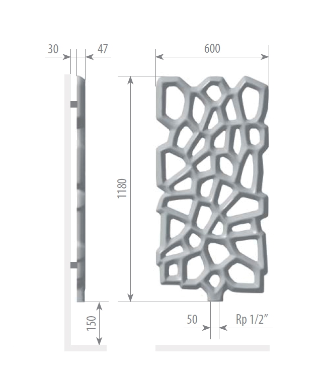 Varmann Diagram - это великолепный отопительный прибор, выполненный из полимербетона, представляющего собой смесь минеральных и синтетических материалов. Его форма создана под вдохновением от работ российского математика Вороного. Внутри радиатора вода течет по трубам, изготовленным из нержавеющей стали.