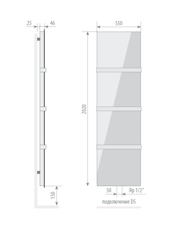 *Комплект настенных крепежей, установленных на корпусе радиатора - 4 шт.