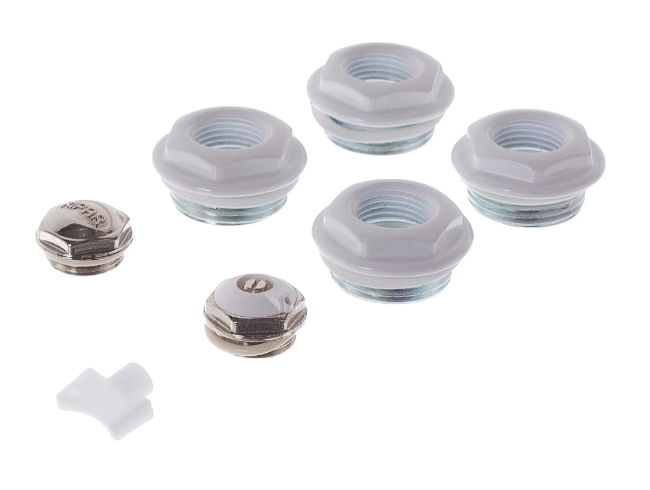 Важно! Перед заказом монтажного комплекта, уточните диаметр подводящей трубы 3/4" или 1/2". В монтажный комплект входят: переходник 1" - 1/2" левый (2шт) с прокладками, переходник 1" - 1/2" правый (2шт) с прокладками, заглушка 1/2" (1шт), воздуховыпускной клапан (кран "Маевского") (1шт), ключ для воздуховыпускного клапана (1шт).