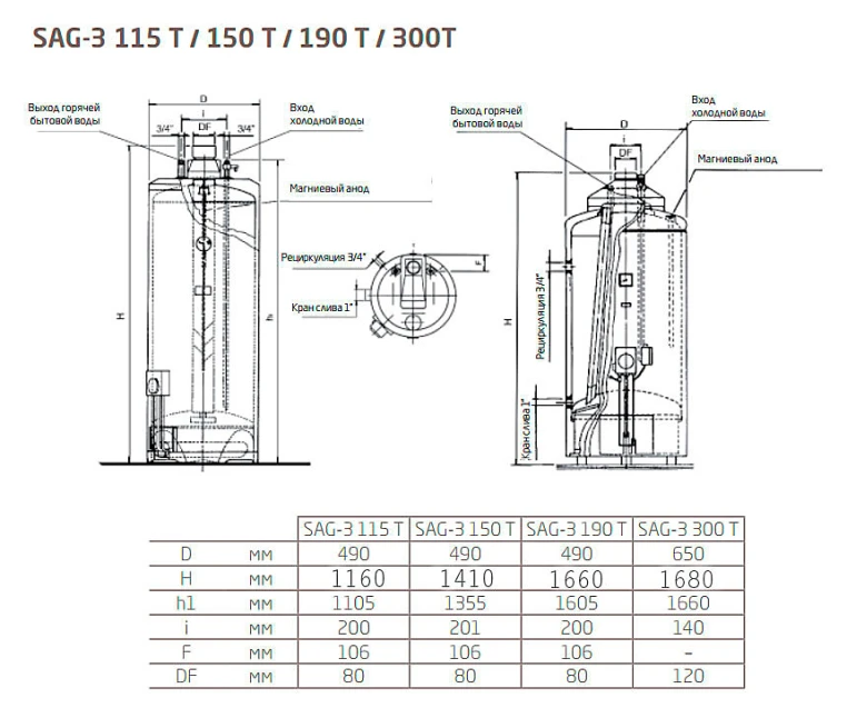 • Наличие рециркуляционного патрубка (в напольных моделях);